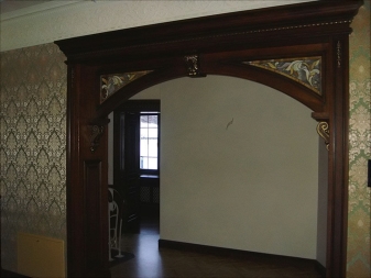 Arches en bois ils sont particulièrement durables, ils ne craignent presque pas les facteurs externes. En règle générale, ces arches ont de larges caisses. À ce jour, les produits sont fabriqués à partir de bois collé. Une telle construction coûte moins cher que le bois massif, mais en termes de qualité, elle n’est pas pire.