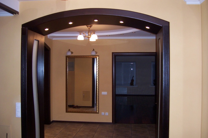 L'arc classique semble bon quand la hauteur du plafond le permet. Si vous retirez la porte intérieure, vous trouvez un linteau transversal en béton au-dessus de votre tête, vous ne pouvez en aucun cas le casser. C'est un élément de soutien pour renforcer le mur. Ensuite, la voûte haute et étroite ne fonctionnera pas. L'arche en forme d'arc bas semble perdre, ce qui signifie que la version rectangulaire sera la bienvenue. Il arrive que la voûte soit nécessaire pour les indicateurs technologiques. Parfois, il peut être nécessaire de renforcer le mur porteur lorsque, par exemple, une réception de porte est coupée.