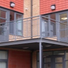 - avec une fixation en porte-à-faux - le principe est similaire à une poutre: les consoles renforcées dans le mur tiennent la dalle du balcon. La partie visible des consoles peut prendre la forme d’une simple poutre, d’une boucle ou d’une sculpture.