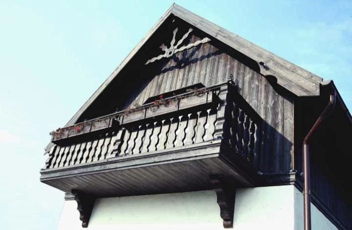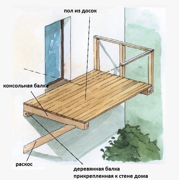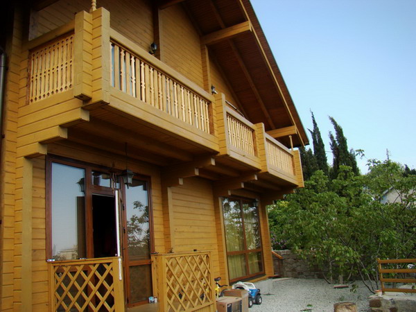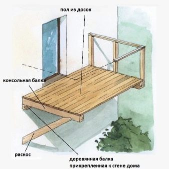 Dans le cadre en bois, les cottages et les maisons en bois arrondis, des technologies et conceptions similaires du balcon sont utilisées: porte-poutre ou console.