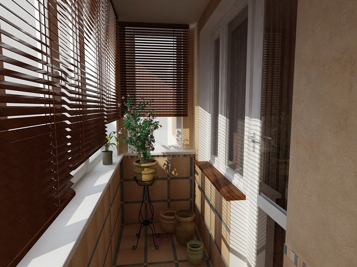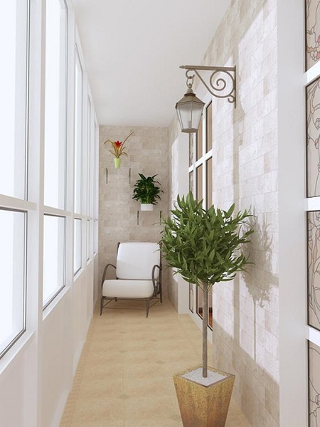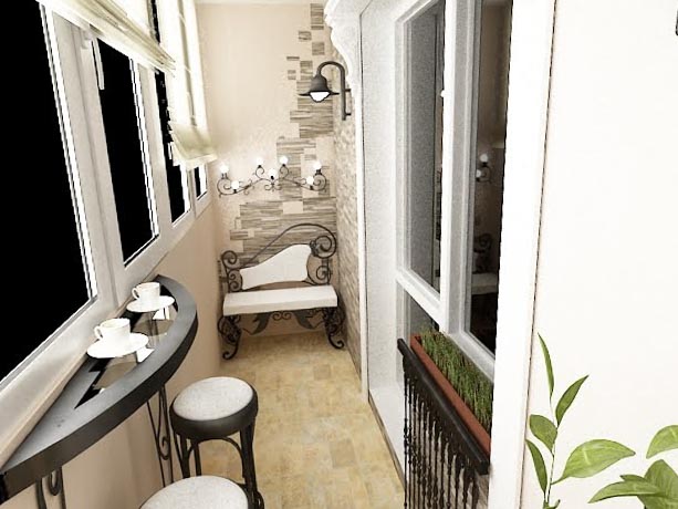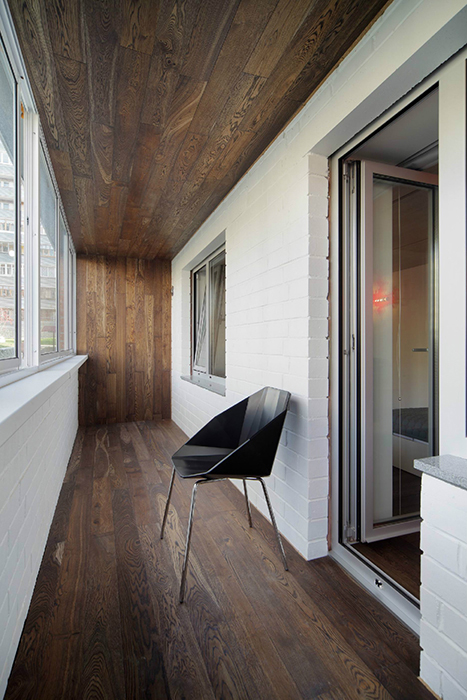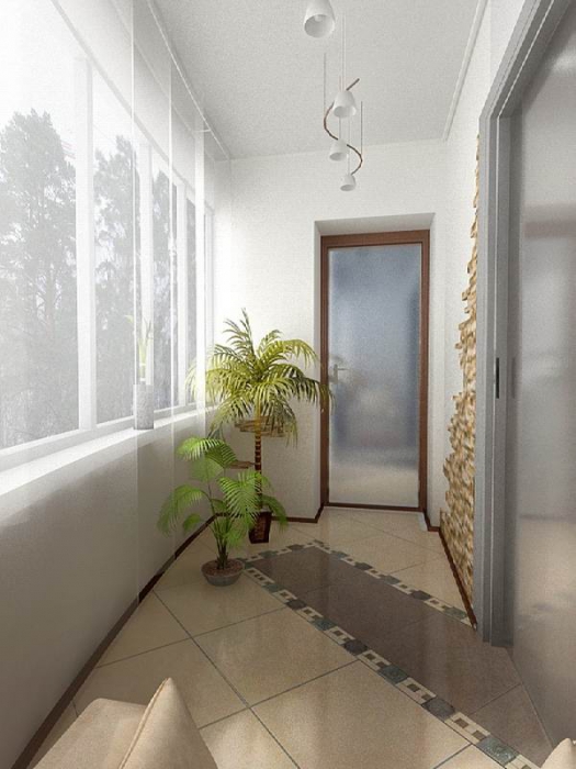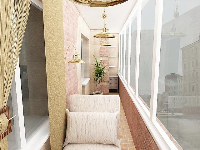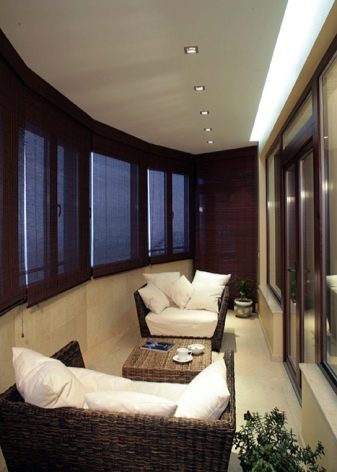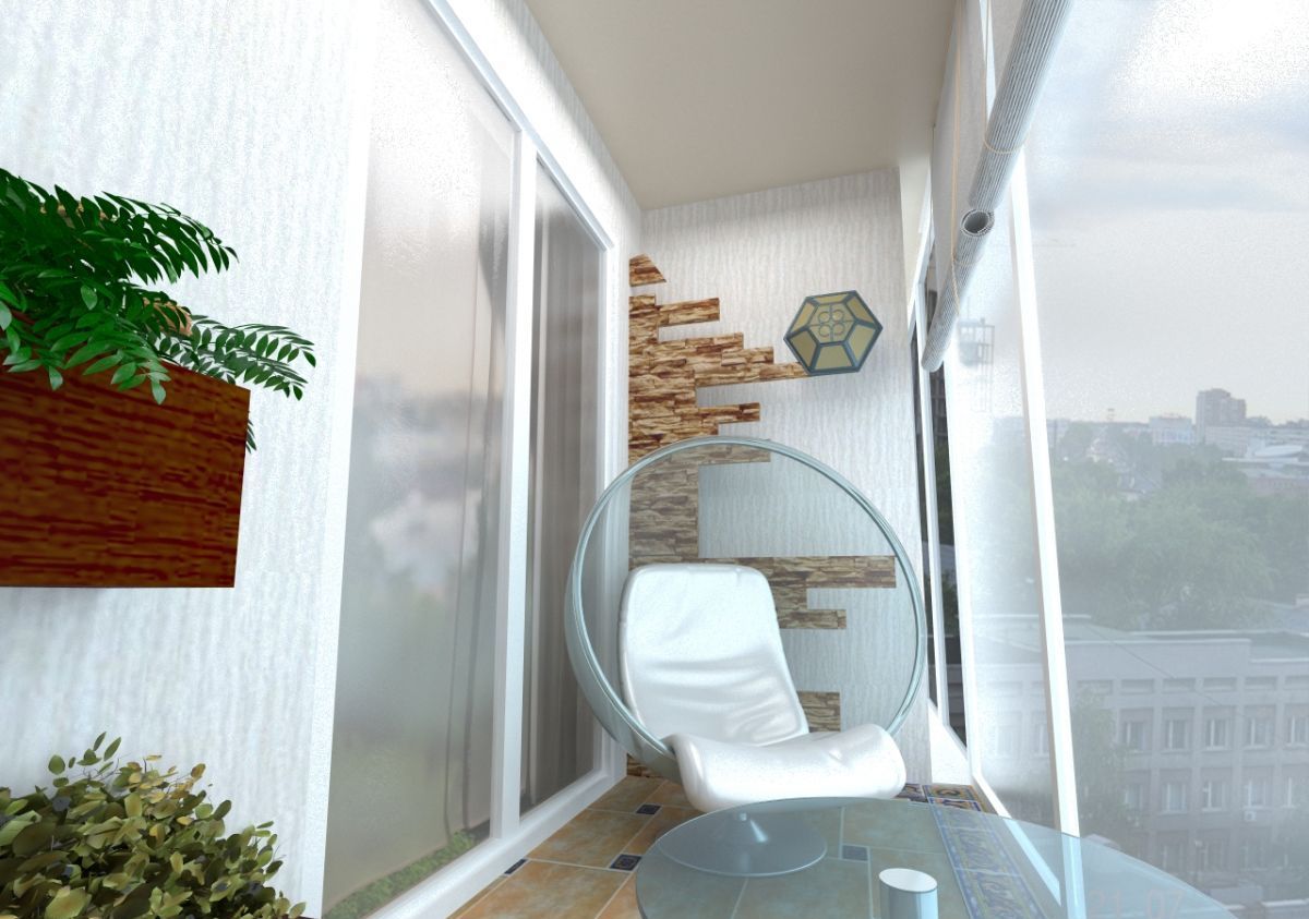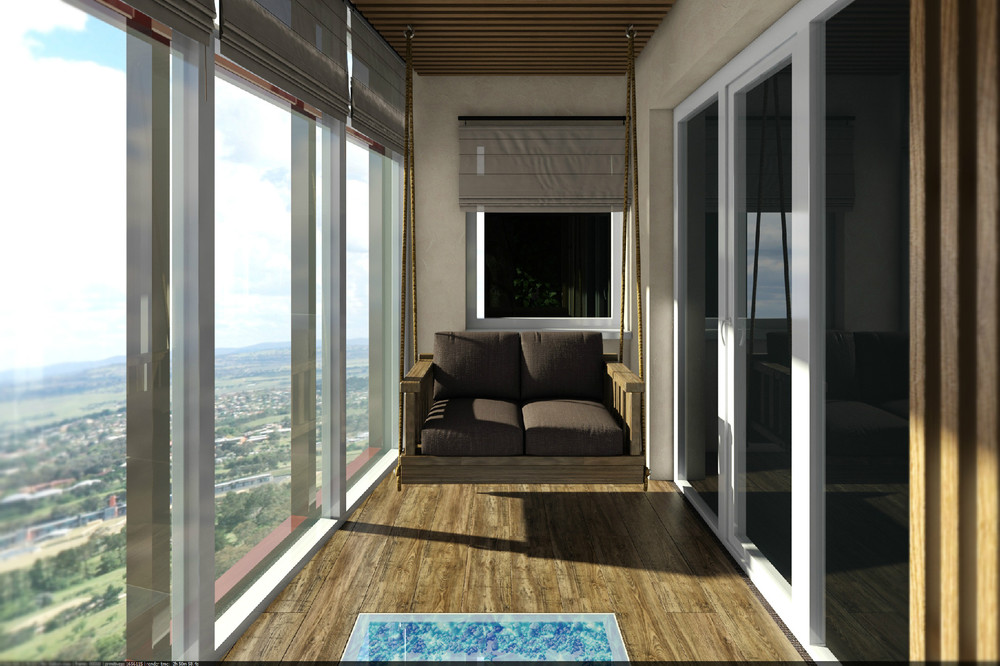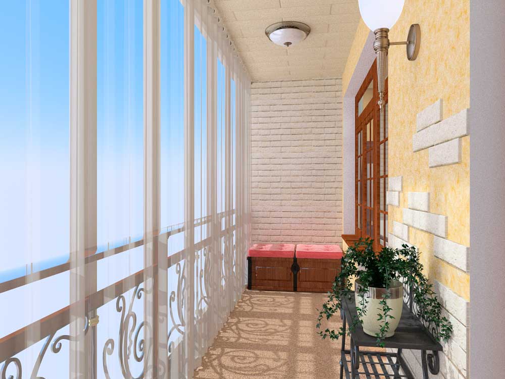 - une loggia-balcon - en grande partie «enterrée dans un bâtiment», le second, ouvert sur trois côtés, représente les extrémités des clôtures latérales. Les plafonds sont montés, comme dans les conceptions de loggia distantes.