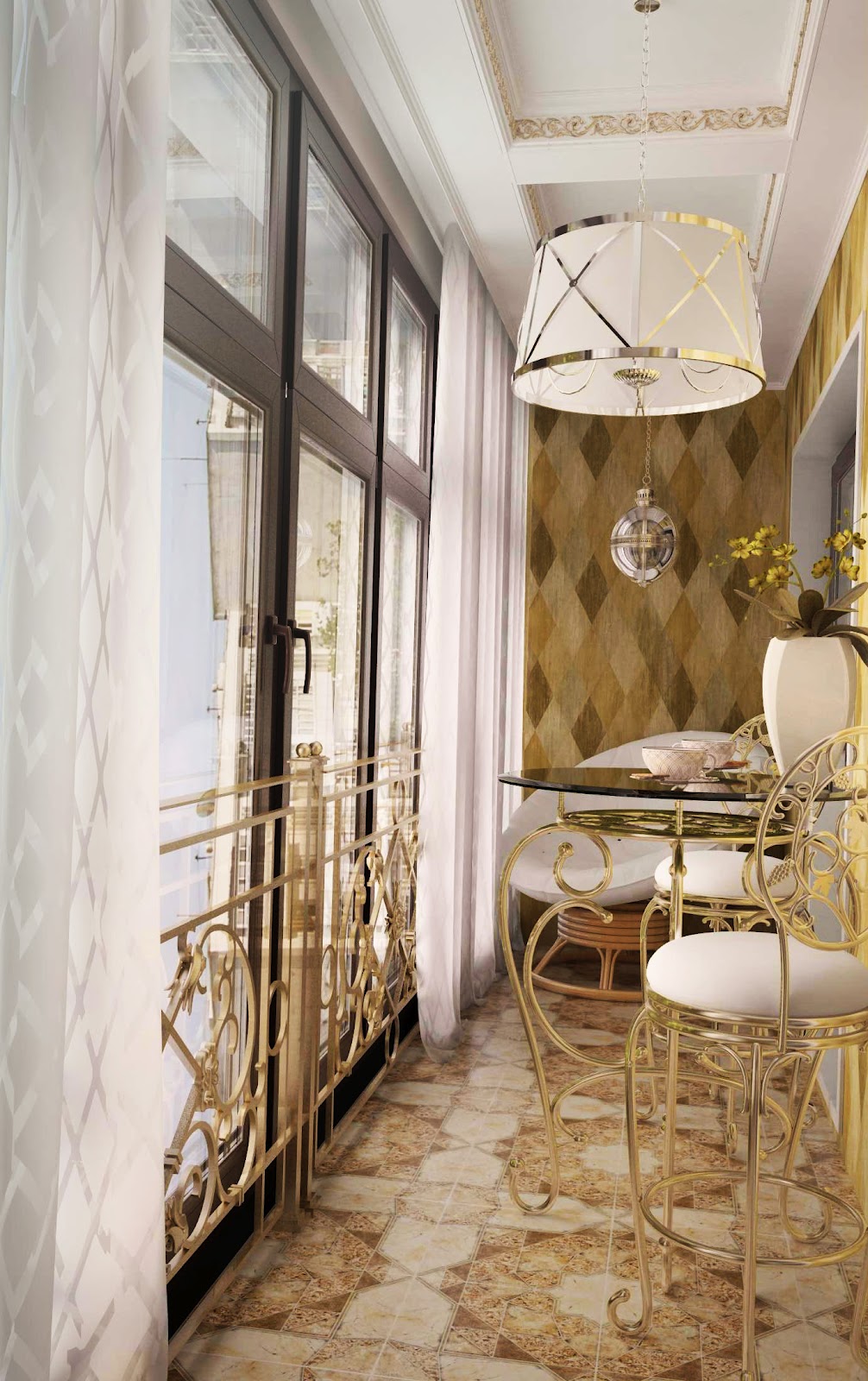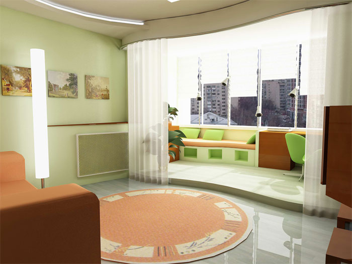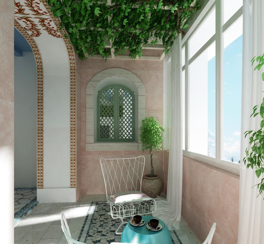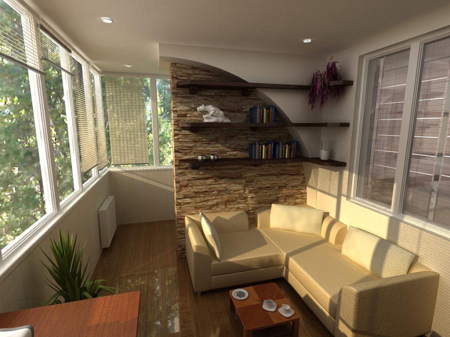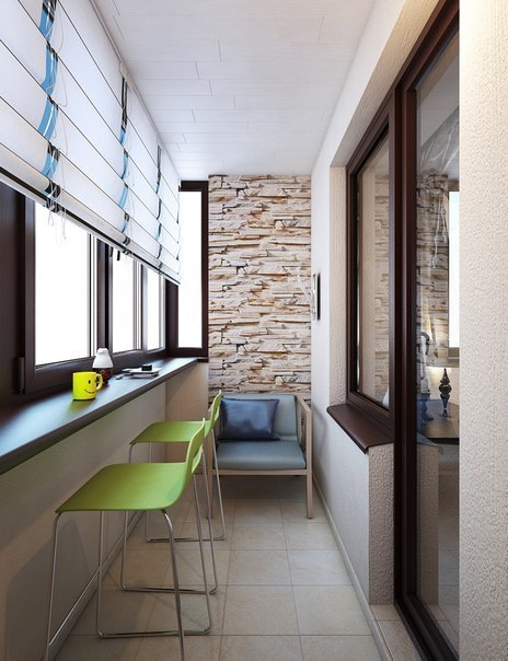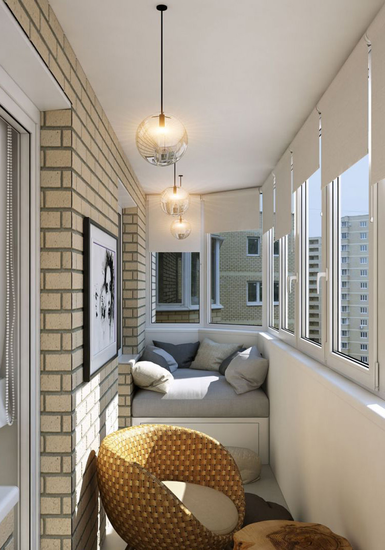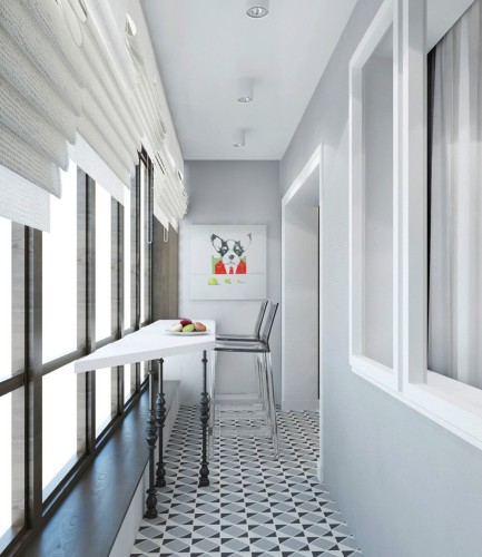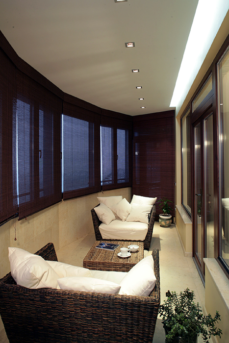 - une loggia-balcon - en grande partie «enterrée dans un bâtiment», le second, ouvert sur trois côtés, représente les extrémités des clôtures latérales. Les plafonds sont montés, comme dans les conceptions de loggia distantes.