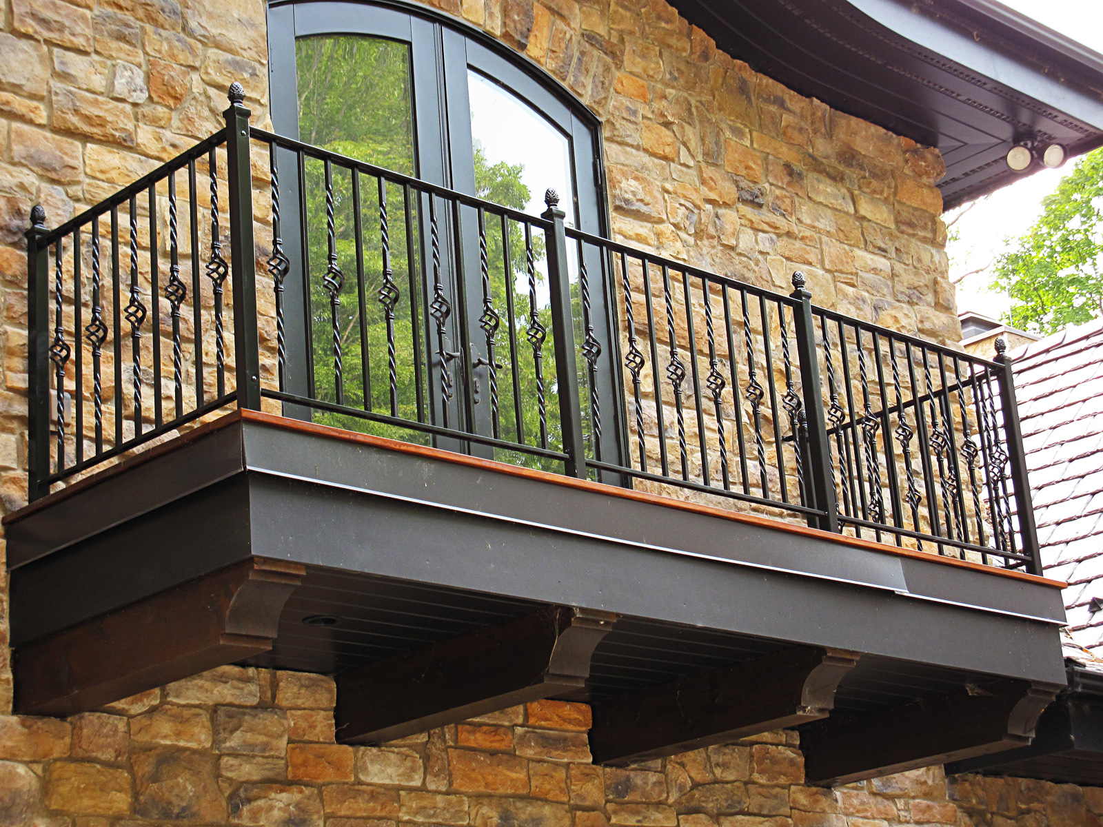 La décision réussie et belle avec une barre de console à partir de laquelle les couronnes descendent vers le bas en diminuant. Une telle structure de balcon en plus de l'esthétique confère une rigidité supplémentaire.