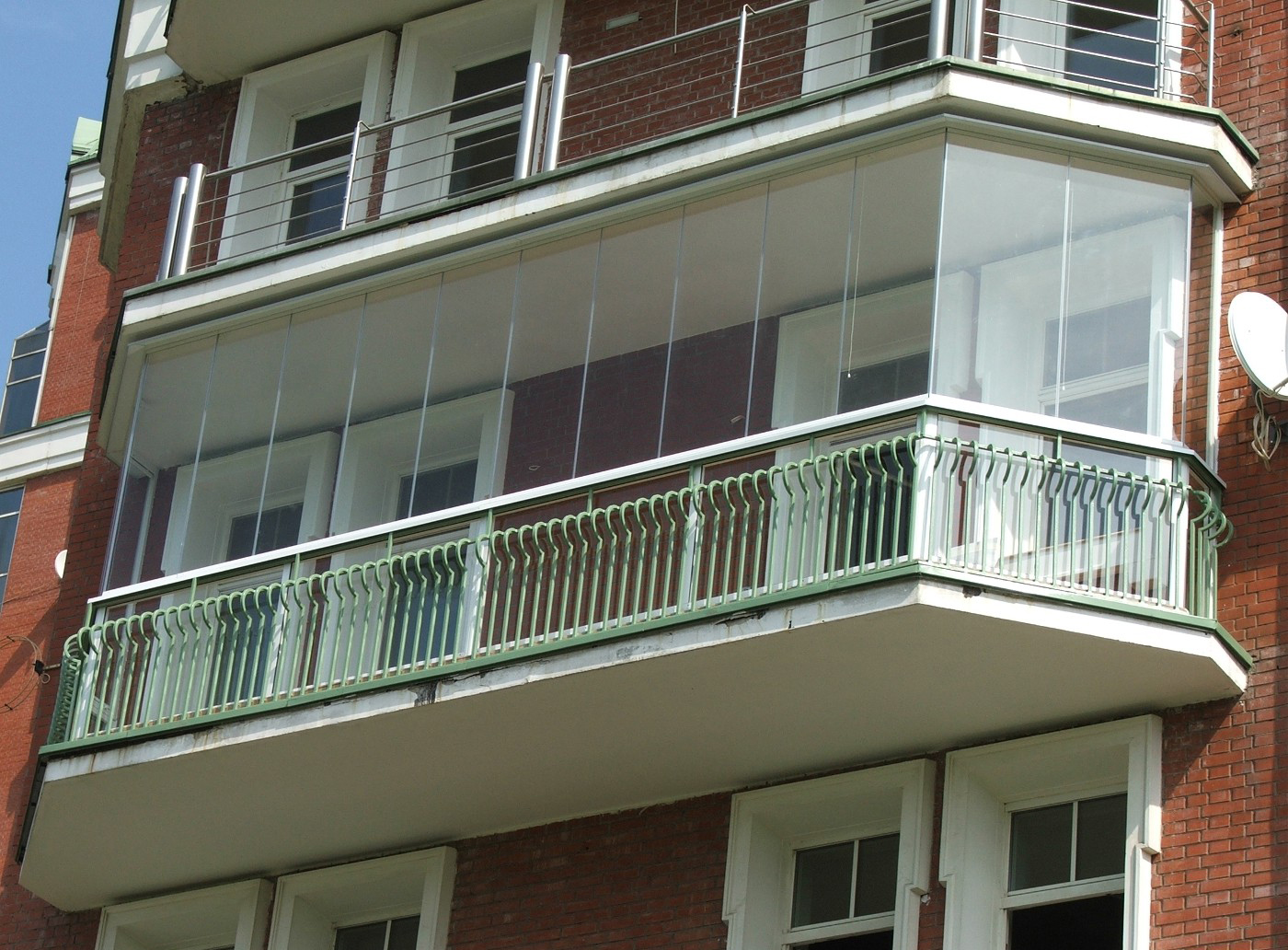 Il y avait aussi des solutions ultranovye - combinatoires.Leur particularité réside dans le fait que les balcons sont une cellule amovible avec une rampe ou des briques de verre, parfaitement prête à être utilisée. Cela facilite non seulement le processus de construction du bâtiment, mais également un moyen très pratique pour la réparation et la restauration, qui peuvent désormais se dérouler sans l'expulsion des résidents.