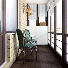 Si vous décidez de poser des carreaux sur le balcon, il est préférable d’utiliser un style de décoration industriel ou classique: les tons de mobilier brun foncé avec des carreaux de couleur pastel sont aussi naturels que possible. Dans cette conception, dans les coins, vous pouvez installer des plantes et de petites partitions avec des fleurs - la couleur verte servira d’accent le plus naturel.