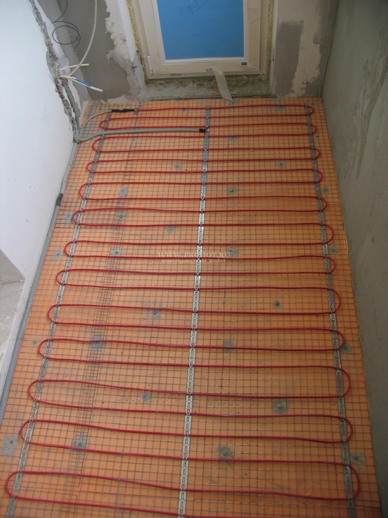 - longue installation. Lorsque vous créez un espace avec des "filets chauds", vous devez dépenser beaucoup d’efforts et d’énergie. Et plus important encore - son heure. Quel que soit le degré de déformation du sol sur le balcon, vous devez: nettoyer, aligner, installer, ajuster et réchauffer.Toutes ces actions sont également associées au choix du revêtement le plus chaud, qui sera écrit ultérieurement.