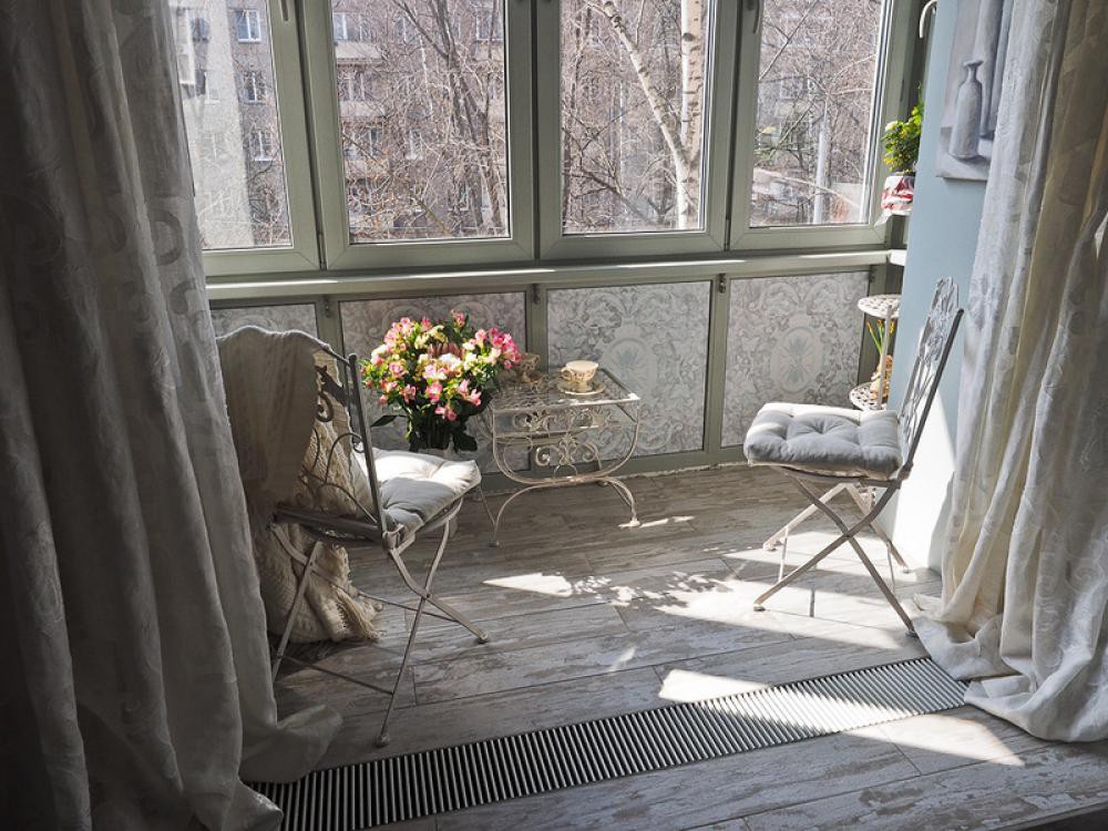 - Le deuxième avantage est la possibilité d'agrandir votre appartement en augmentant la surface habitable. Dès que le plancher chauffant est installé, il est possible d'aménager un balcon de différentes manières: stylisez-le sous le salon, la salle de travail ou la salle à manger. Chacune de ces options n’est possible qu’avec l’isolation. Sans cela, le balcon ne peut servir qu’entrepôt ou placard.