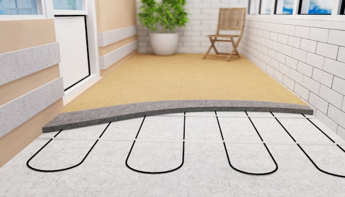 - installer un système de chauffage par le sol et fixer le régulateur de température juste au-dessus de la base du sol;