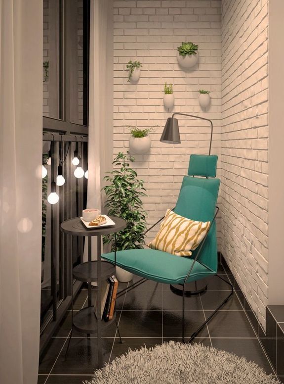 - Les lampes doivent être installées autour du périmètre. Les modèles intégrés, les bras de lumière et les cintres paraîtront harmonieux et ne surchargeront pas l'espace du balcon;
