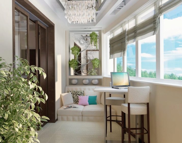 Le balcon étant un espace limité, sa conception doit répondre aux exigences de fonctionnalité. Pour concevoir un tel espace dans le même style, vous pouvez utiliser des astuces de conception: