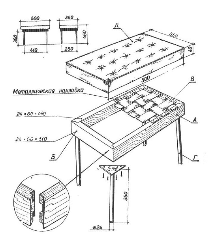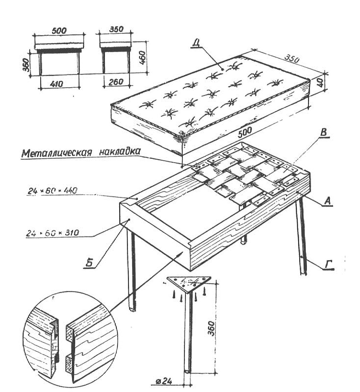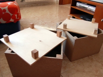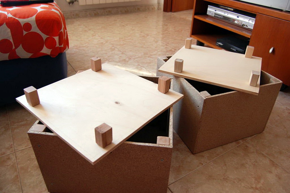 La production des pièces et leur assemblage doivent être effectués par étapes, car tout collecter est un travail très sérieux. Pour éviter les erreurs et ne pas gâcher un meuble, vous devez suivre certaines règles. Par exemple, dans le contreplaqué, assurez-vous de faire des trous pour les vis. Pour cela, une perceuse est utilisée. Le couvercle doit être de la même taille que le périmètre du boîtier afin de ne pas gêner le gainage ultérieur du produit. L’assemblage du cadre commence par le fait que sur l’établi, ils collectent un carré des découpes et les relient à l’aide de vis autotaraudeuses. Le fond prédécoupé est fixé au châssis à l’aide de vis, puis la teinture est peinte à l’intérieur de la structure.