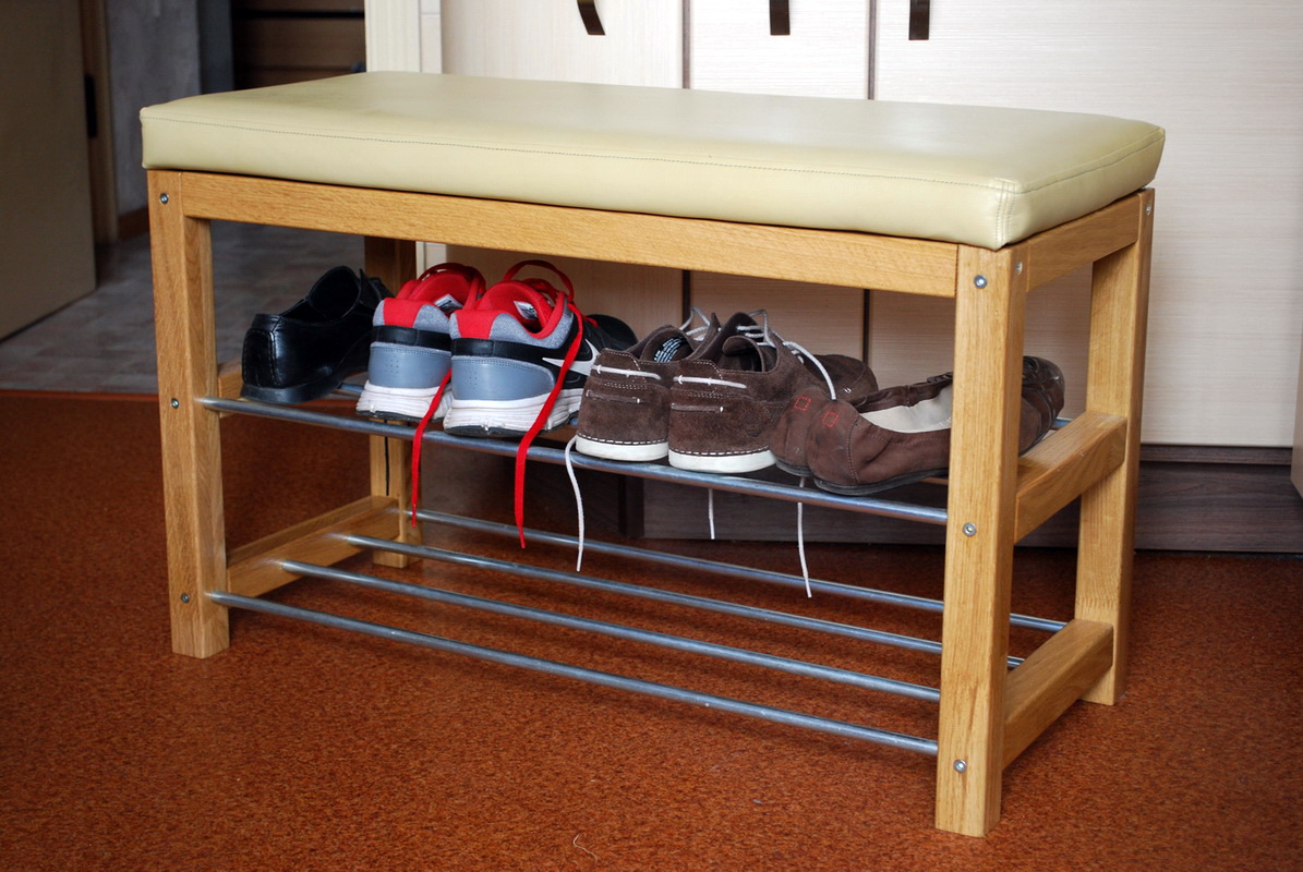 Le tabouret des vieilles chaises aura l’air original. Pour ce faire, prenez deux dossiers de chaises avec les pattes arrières et connectez-les à l'aide de deux barres. Fixez les barres besoin d'angles et de vis. Ensuite, ils fabriquent un siège en contreplaqué et le recouvrent de caoutchouc mousse et de tissu. Le banc de bouteilles en plastique est la tendance de cette année. Pour la fabrication d'un tel produit devra préparer environ 40 bouteilles, carton, ruban adhésif, colle et caoutchouc mousse. Les bouteilles sont attachées ensemble avec du scotch, puis collées sur le carton coupé des deux côtés: en bas et en haut. Après cela, la construction est recouverte de caoutchouc mousse et recouverte d'un chiffon. Une vieille étagère à chaussures peut devenir un produit multifonctionnel. Pour ce faire, il doit être poli et peint. Ensuite, en haut, vous devez confectionner le siège d’un oreiller sinteponovoy, qui est préalablement placé dans une housse et fixé à l’étagère.