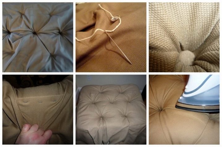 - Pour le rembourrage, vous devez d'abord faire un motif. Le tissu est jeté sur le produit fini et fixé avec des agrafes.