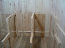 - En fonction de la hauteur de la structure, du bois est préparé pour le mur avant et le fond. À partir de barres robustes, faites un support sur lequel ils collectent des boucliers pour les murs, ajustant étroitement le faisceau et fixant immédiatement les matériaux avec un coupleur.