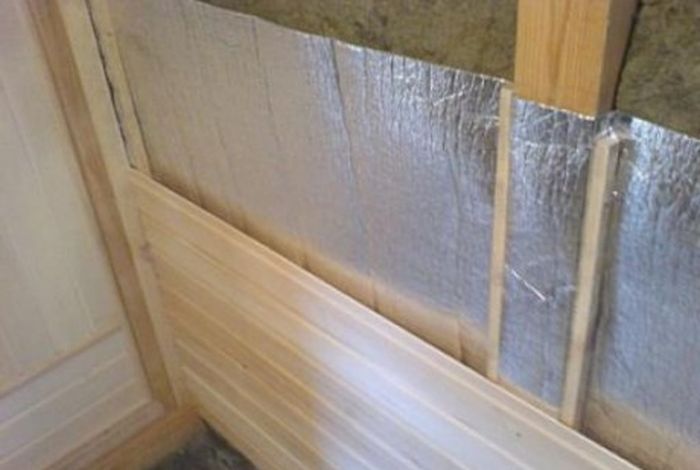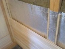 Pour le réchauffement des saunas, on utilise le plus souvent de la laine de verre, des fibres minérales et basaltiques. Ce sont les matériaux les plus durables et les plus résistants au feu qui, en outre, ne sont pas sujets à la pourriture. L'isolation thermique est réalisée en deux couches avec isolation et feuille. La fibre de verre gisait dans le cadre du hammam.