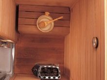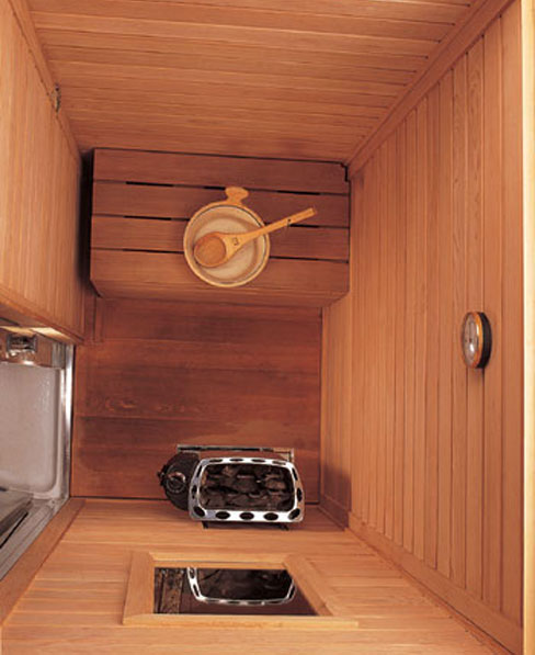 Le point important est le choix du four, équipé d'un arrêt automatique à une certaine température, dont la puissance doit être d'au moins 4,5 kW. De plus, il est possible de monter des pulvérisateurs d’incendie aux limites de la cabine - à cet effet, la connexion aux conduites d’eau est soigneusement étudiée et le hammam est protégé par des matériaux d’étanchéité.