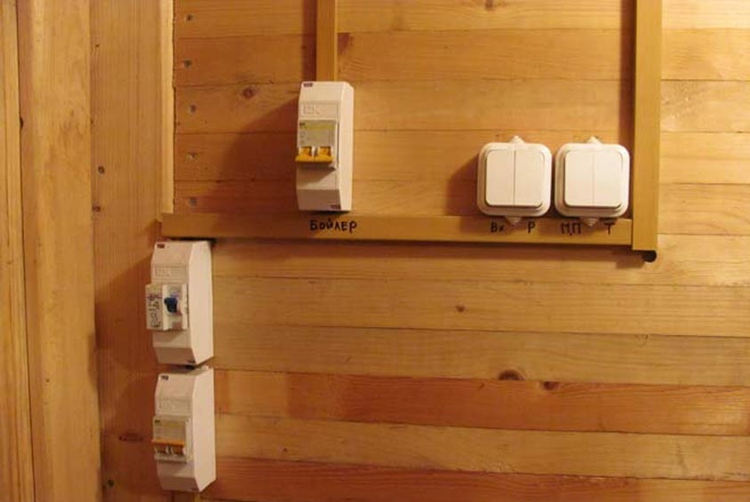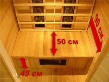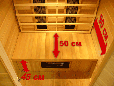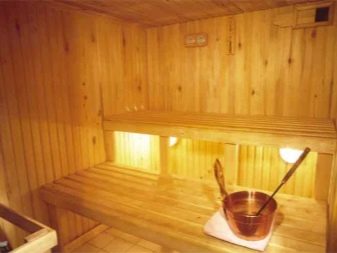 Tout d’abord, déterminez l’emplacement de l’équipement de chauffage. Les luminaires sont situés sur les côtés d'un banc en bois, des lampes de 40 watts suffisent pour un éclairage normal.