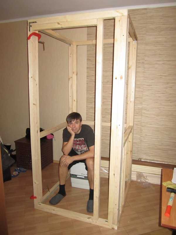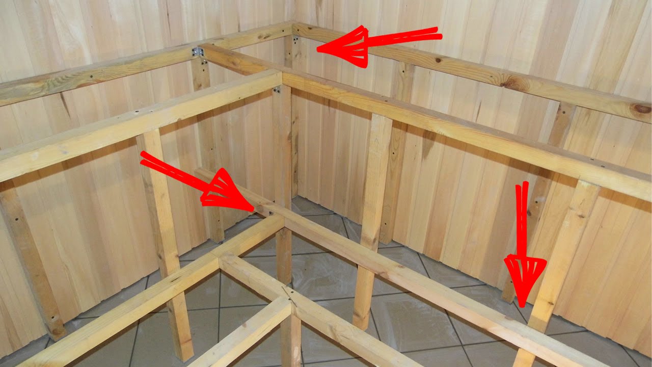 - cadre construit à partir du bois habituel, qui est fermement appuyé contre le mur;