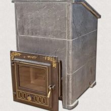 - PB 01 M. Ce modèle est fabriqué en talcochlorite et présente certaines caractéristiques dans la conception,consistant en un mouvement de vapeur non standard. Les dimensions du poêle sont 71x49,5x88,7 centimètres, et le poids est de 350 kilogrammes.