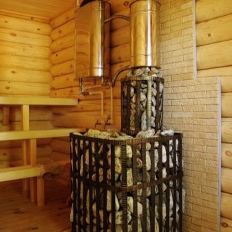 Une telle modification du four métallique pour le bain constitue la meilleure alternative aux homologues en pierre traditionnels. L'avantage indéniable de la conception est sa capacité d'adaptation pour les petites pièces. Parmi les inconvénients, vous ne pouvez sélectionner que le coût élevé.