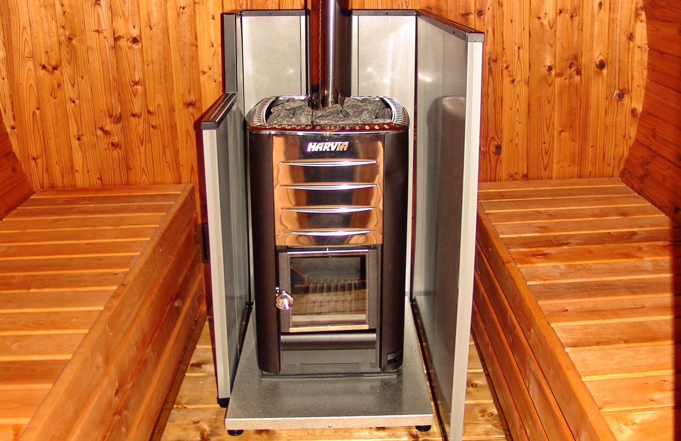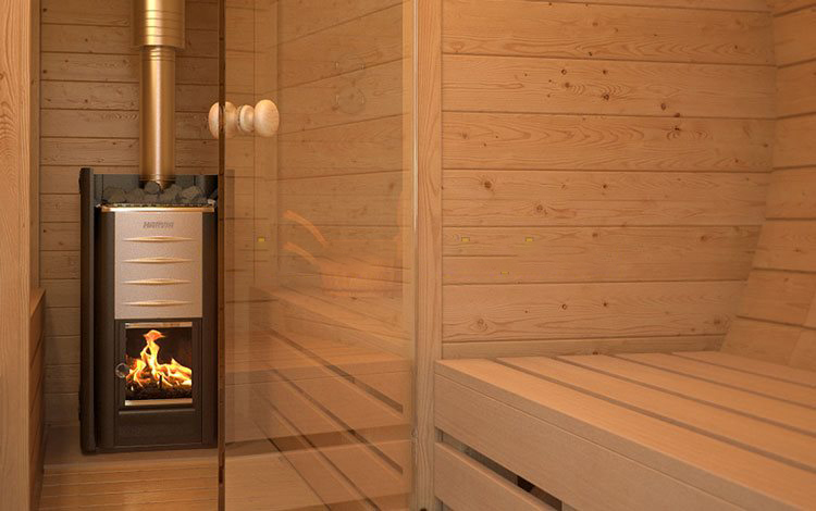 Le chauffage fermé est situé au-dessus de la chambre de combustion, la protection par le dessus est assurée par une tôle d'acier.La porte latérale sur le côté du hammam sert à fournir de l'eau et à créer de la vapeur.