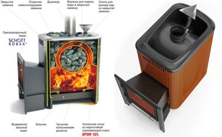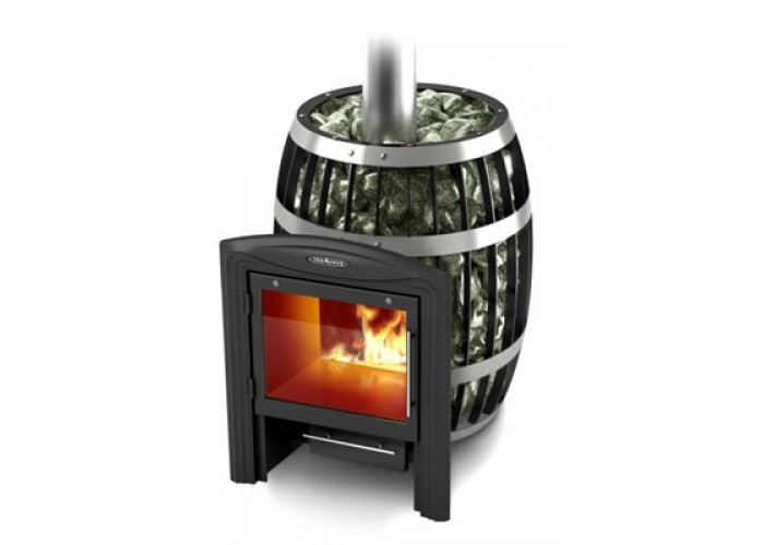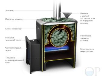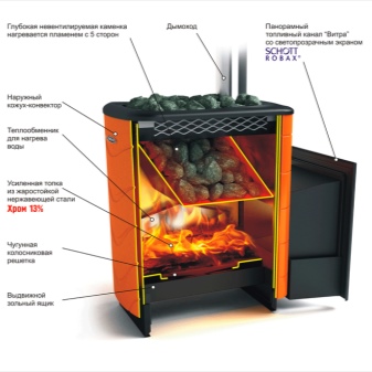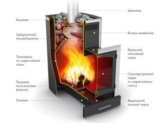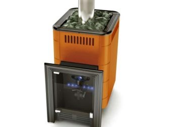 Un poêle de sauna peut ressembler à une vraie cheminée avec un grand verre, ce qui vous permet d’admirer la flamme de la salle de relaxation. Le fabricant propose un appareil avec un appareil de chauffage fermé et ouvert.Lors de la création d'un dispositif de chauffage utilisé en acier résistant à la chaleur, caractérisé par une résistance élevée. De tels produits ne perdent pas leurs propriétés au fil du temps, la rouille n'y apparaît pas. La vapeur est saine et agréable, car l’air n’est pas brûlé dans le hammam..