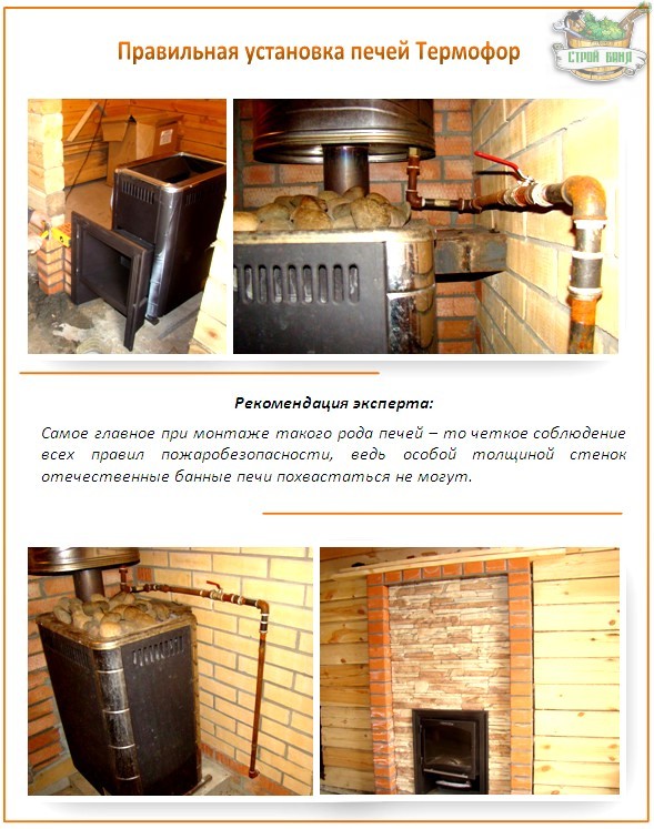 Avant d'installer le four Termofor, vous devez lire attentivement les instructions d'installation. Il est conseillé de prendre en compte toutes les recommandations qui lui sont données car les appareils de chauffage sont des sources de danger potentielles. Si vous n'installez pas correctement le poêle, vous pouvez vous brûler ou même faire un feu.