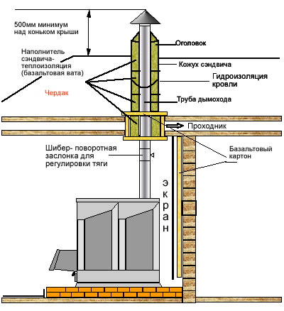 Pour éviter les problèmes avec le poêle «Tunguska», il est utile d'équiper la cheminée d'un économiseur et de la placer face à la pierre. Le respect de ces règles préviendra l’incendie.