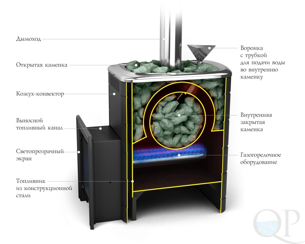 Le poêle est non seulement efficace, fiable, mais aussi très élégant. Dans ce dispositif, les pierres sont situées à l'extérieur, contrairement aux fours conventionnels, où elles se trouvent à l'intérieur.