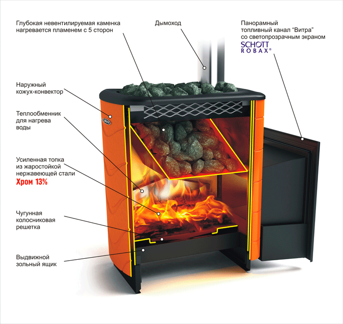 - L'endroit où le poêle sera installé. Le fabricant propose des dispositifs pour l'installation dans les salles de vapeur adjacentes ou.