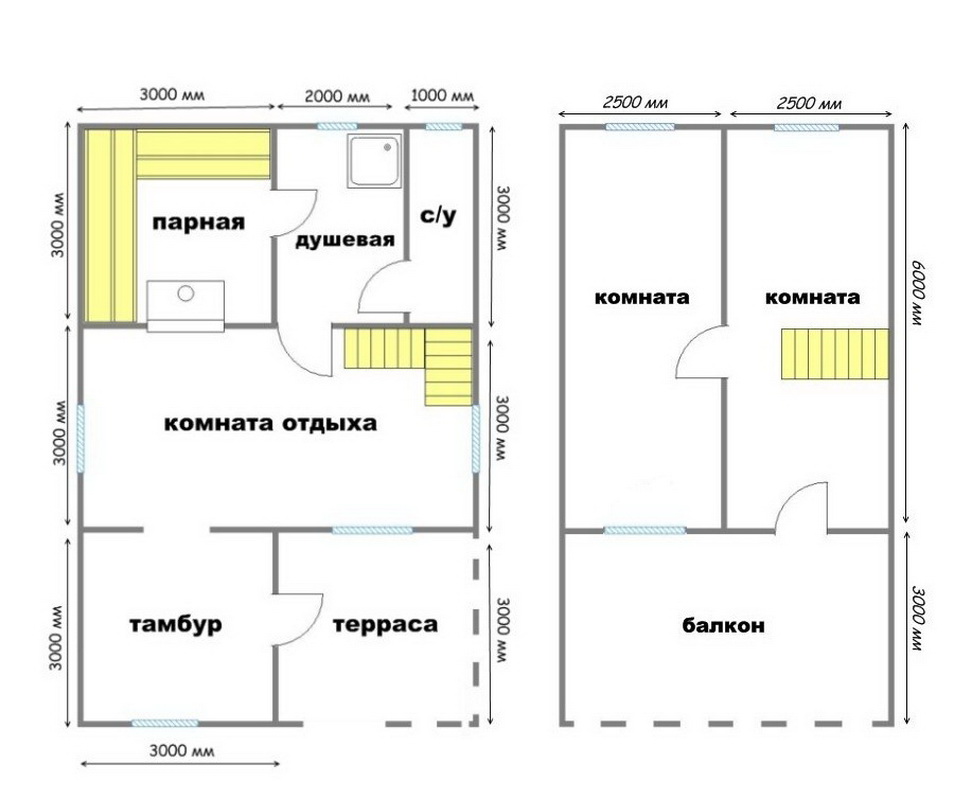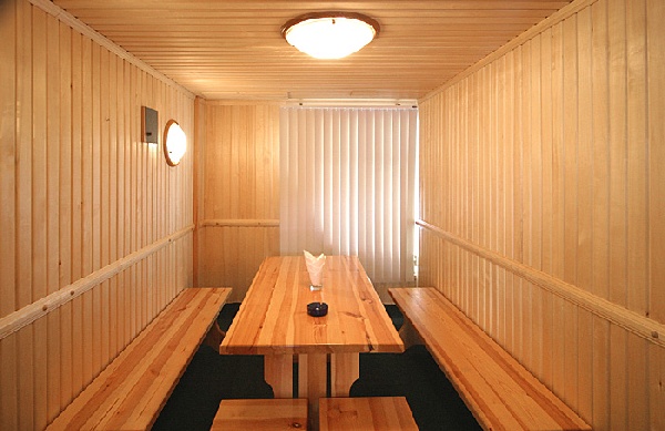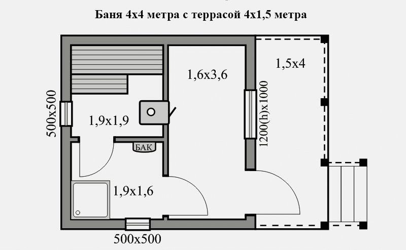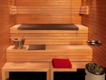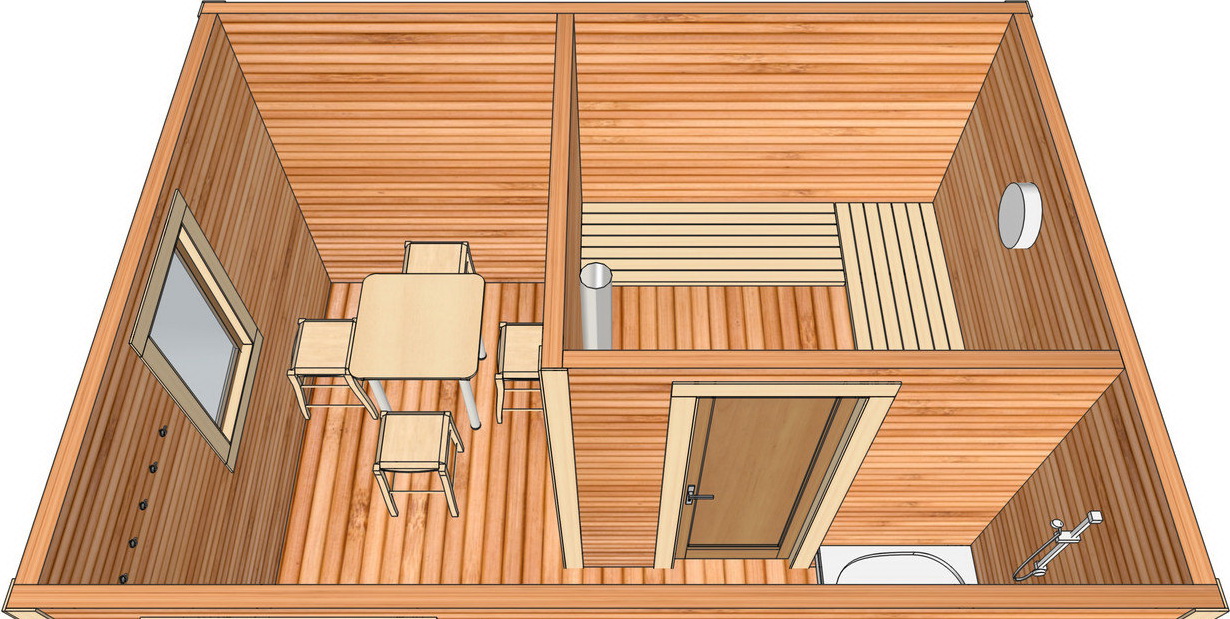 Et aussi pour un séjour confortable dans toutes les chambres et une ventilation supplémentaire, vous pouvez aménager des fenêtres dans la salle de repos et la douche. Leurs tailles optimales seront respectivement 70 x 70 cm et 50 x 50 cm. Le hammam lui-même peut également être équipé d'une petite fenêtre. Les dimensions préférées seront les mêmes 50 à 50 cm La baignoire à cadre prévoit la construction d'un toit à pignon, sous lequel il est possible d'équiper le grenier.Il sera de petite taille, mais vous pourrez y stocker tout ce dont vous avez besoin pour bien vous reposer.