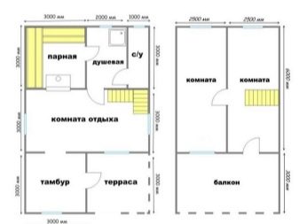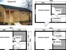Aujourd'hui, de nombreuses entreprises fabriquent des bains clé en main. Les schémas de structures, le calcul des matériaux de telles structures peuvent être utilisés pour créer des idées pour votre propre projet. Par exemple, une salle de bain dans la région peut être un bâtiment d'un étage avec un petit grenier, vous pouvez équiper le grenier, qui servira de chambre d'amis. Mais il y a aussi la possibilité de construire un bain de deux étages, après avoir équipé une salle de loisirs à part entière au deuxième étage avec une table de billard, un centre de musique et une grande télévision.