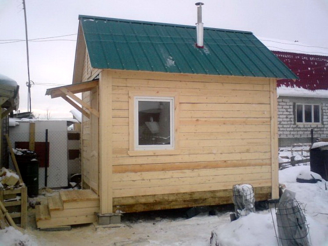 Après avoir terminé la construction des murs, vous pouvez procéder à la disposition du toit de la baignoire. Tout le travail est fait selon le schéma standard. Il est nécessaire de fournir une excellente ventilation afin d'empêcher la vapeur et le condensat de s'accumuler sous le toit. Dans les ouvertures de portes et fenêtres formées peuvent être montés des portes et des fenêtres. Les portes en métal peuvent être préférées comme porte d'entrée, alors que les portes en bois conviennent aux portes intérieures.