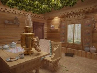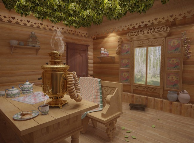 Malgré les nombreuses tendances dans la conception des bains modernes, le plus populaire reste la décoration de style russe traditionnel avec les bancs habituels du hammam et des ustensiles de bain traditionnels.