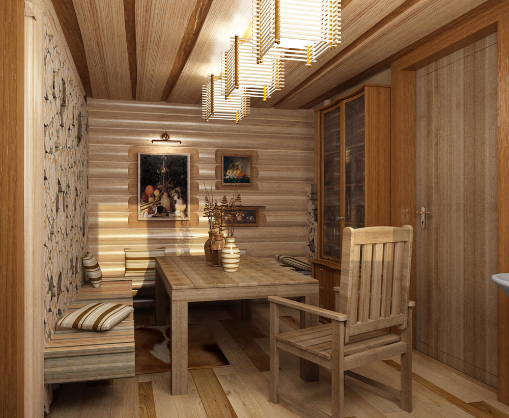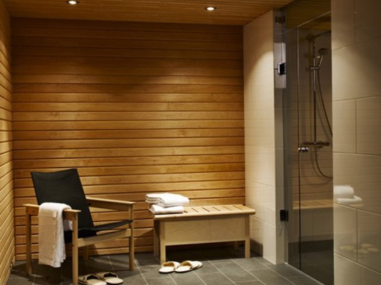 Pour la finition d'une salle d'attente, au contraire, il est préférable d'utiliser du bois tendre, tel que l'épinette ou le pin. Comme cette pièce n'est généralement pas très chaude, l'odeur des aiguilles de pin, libérée sous l'influence d'une chaleur modérée, remplira la pièce d'un arôme agréable, qui possède notamment des propriétés bactéricides et la capacité de renforcer l'immunité humaine. Cette propriété contribue à la résistance du corps humain aux maladies infectieuses.