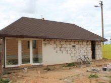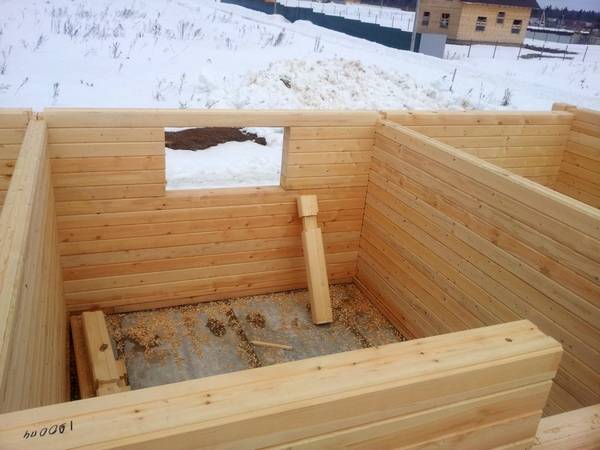 Un projet typique de bain de 4x6 m implique un bâtiment à cinq murs. Par conséquent, la partition commence à se construire au stade initial.
