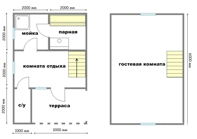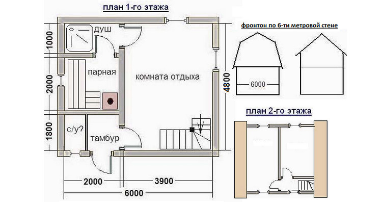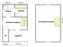 Si vous le souhaitez, le bain peut être fait sur 2 étages. Maintenant, cela ne surprendra personne et les avantages d'une telle décision en apporteront beaucoup. Il suffit de noter que le deuxième étage sera en fait une pièce de 6 x 4 mètres dans laquelle vous pourrez aménager un espace de loisirs confortable ou aménager des chambres.