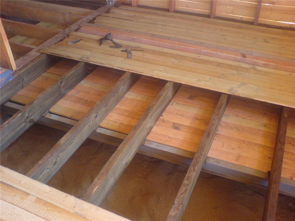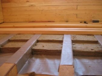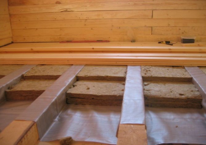 Tout d'abord, un revêtement rugueux est installé. Un matériau imperméabilisant est appliqué sur celui-ci - il protège le coton de la pénétration d'humidité par le dessous. Ensuite, posez la laine minérale - soigneusement, sans laisser d’admission, recouvrant toute la surface du sol. Un revêtement pare-vapeur est posé sur le dessus. Ensuite, posez le sol propre. Il peut être corrigé avec des clous simples.