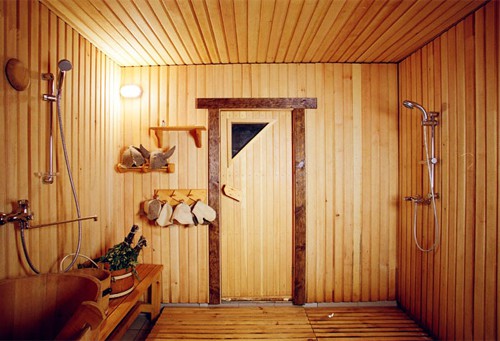 Dans cette salle, l'arbre est le plus préférable. Il est durable, résiste bien aux températures élevées et n'émet pas de substances nocives.Certaines essences de bois, telles que le tremble, émettent des substances spéciales qui sont bénéfiques pour la santé humaine et ont un effet positif sur son état émotionnel.