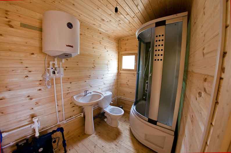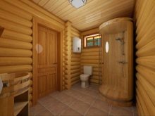 Vous pouvez construire une salle de bain en fabriquant un cadre à partir d'une maison en rondins ou d'une boîte de blocs de pierre. Les locaux intérieurs doivent être finis uniquement avec du bois, qui n'est pas imprégné d'aucune couche d'apprêt ou de vernis. Le bois est dans ce cas un matériau idéal et son remplacement est presque impossible à trouver. Ses principaux avantages sont les suivants: