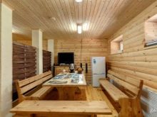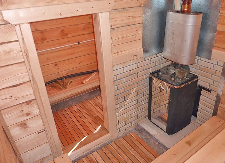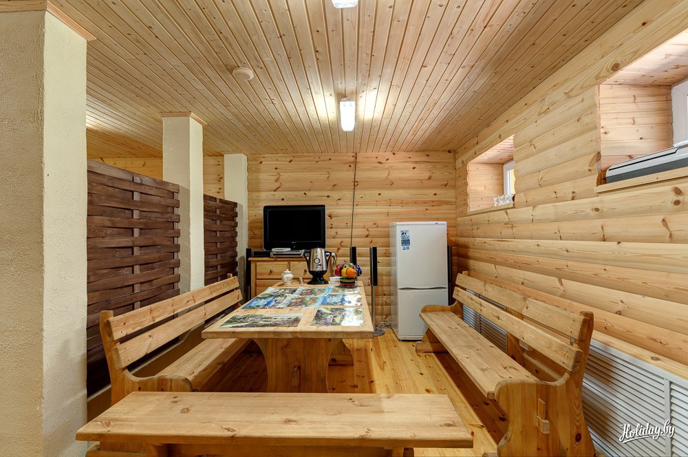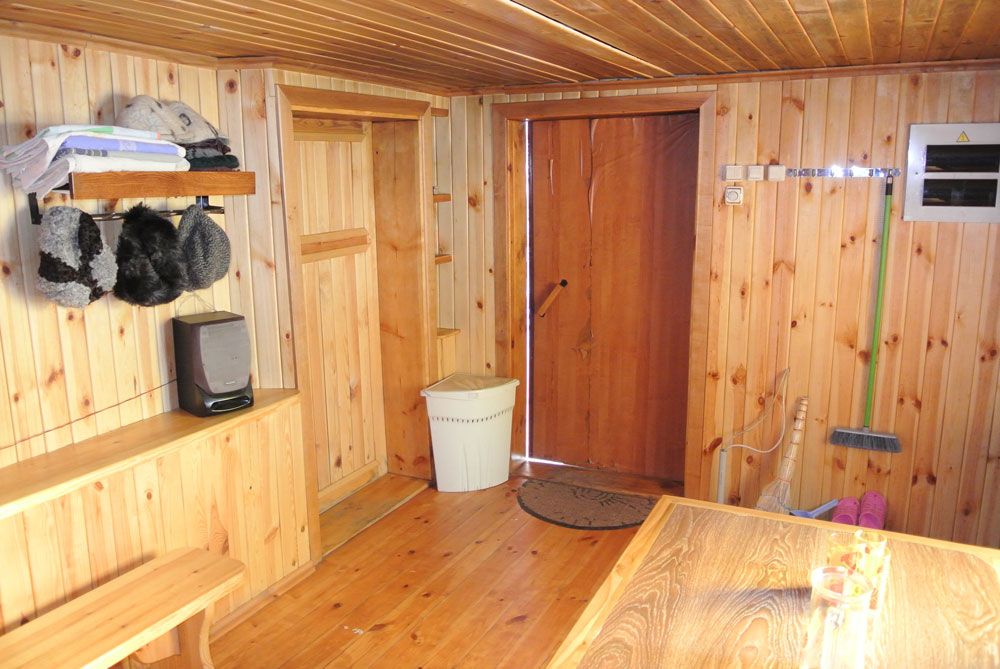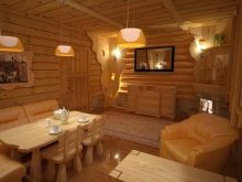 Salle de loisirs - un endroit où vous pouvez dîner et regarder la télévision.Les murs de cette pièce sont recouverts d'une doublure en bois. On utilise parfois des tôles d'acier inoxydable d'une épaisseur de 2 à 3 mm. Un tel bain maintiendra parfaitement la température optimale, ce qui permettra d'économiser des mètres cubes de bois ou de charbon.
