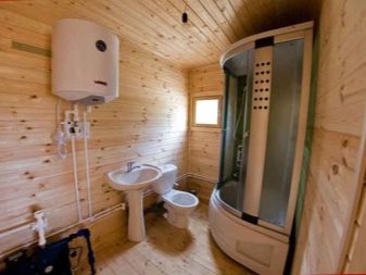 Sans parler de la pièce dont il est difficile de surestimer l’importance: c’est la lessive. Habituellement, l'eau est chauffée à l'aide d'un chauffe-eau, qui est en contact étroit avec le poêle. Dans la lessive aussi place souvent la douche.
