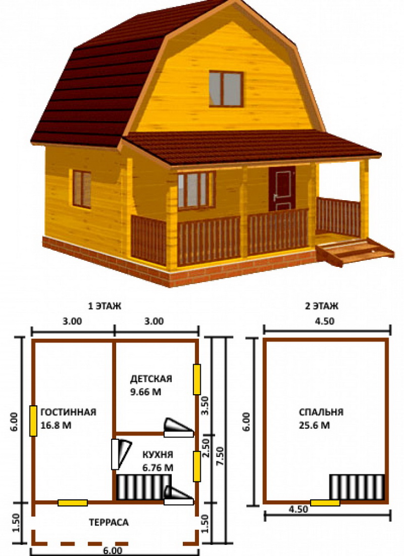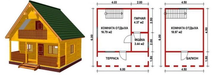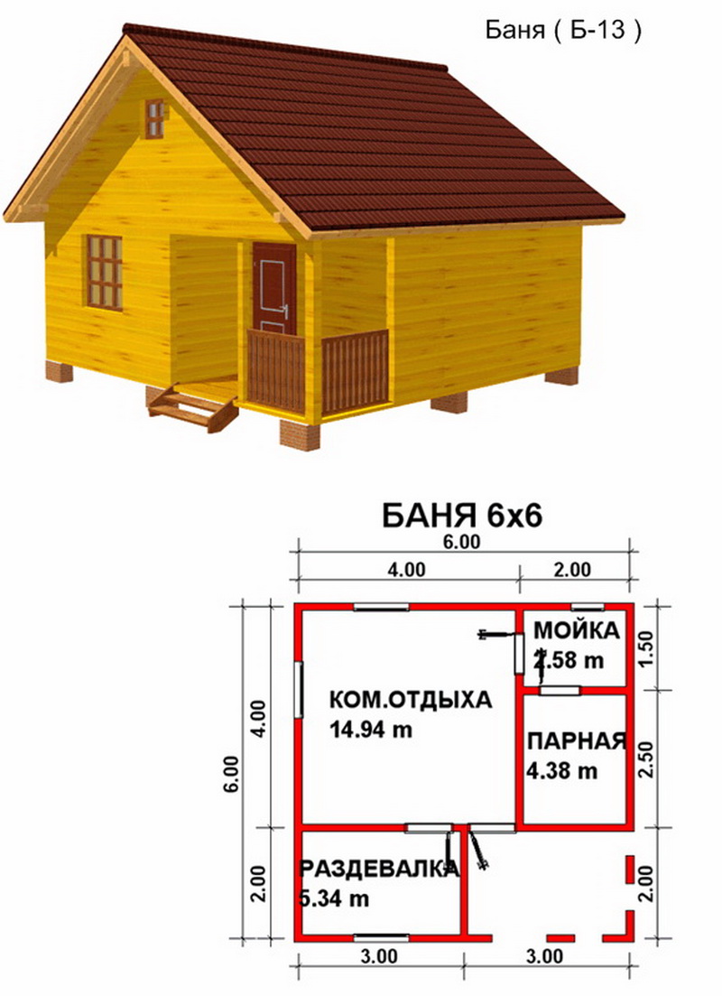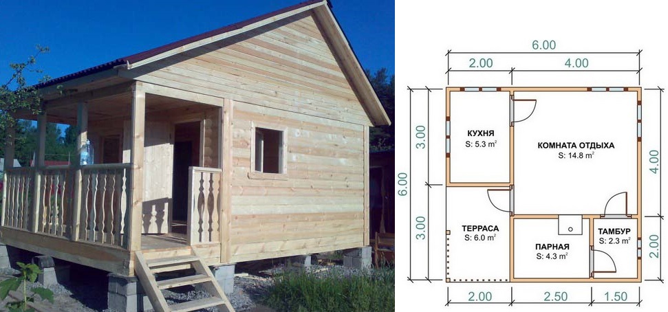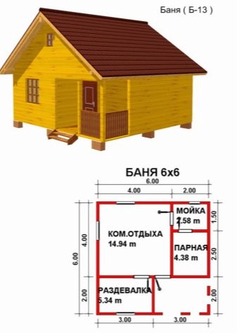 Bath 6x6 mètres protège de manière fiable contre les basses températures et les intempéries. Selon la base interne, sa surface utile est de 25 mètres carrés, sa véranda de 8 mètres carrés, son hammam de 7 mètres carrés, sa salle de lavage de 6 mètres carrés et sa salle d’attente de 4 mètres carrés. Ces tailles sont approximatives, elles reflètent une tendance générale.De plus, de nombreux fabricants produisent des baignoires standard pouvant être assemblées sur le site. Le coût de tels objets commence à partir de 450 000 roubles.