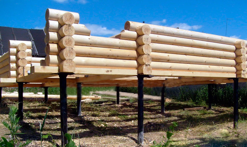 Les grumes ou les boudins sont utilisés dans un diamètre de 25 à 35 cm, qui sont coupés «dans la tasse». Les dimensions intérieures de la pièce seront d’environ 30 mètres carrés, ce qui est suffisant pour disposer de toutes les installations nécessaires et même pour créer une véranda fermée. Il est plus simple et moins coûteux d’établir une base pour les bains à vis sur un bain. Ils correspondent au cadre de l'objet, en bois ou en rondins. La résistance de la fondation sur pieu n’est pas inférieure à la base de la bande, ses avantages sont les suivants: