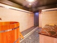 Grand aujourd'hui Le bain russe jouit de l’amour populaire, son cœur est chaud, jusqu’à + 60-70 ° C avec un bain de vapeur humide jusqu’à 90%. A proximité il y a une salle de lavage et un dressing avec un dressing.