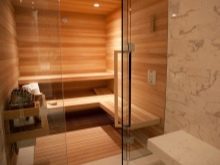 Il faudra prendre une douche ou un bain pour refroidir le corps. Cette zone est séparée de la pièce par une paire de portes en verre ou en bois. L'appartement a ces fonctions dans la salle de bain, dans un bâtiment séparé, vous pouvez faire une piscine ou une salle de douche.