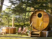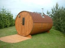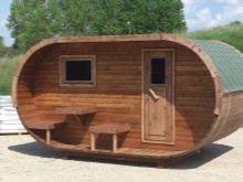 Option budgétaire et pratique pour la construction de pays sont des bains sous la forme d'un tonneau. C'est l'option parfaite pour un sauna finlandais. Ils sont faciles à monter, disposent des locaux nécessaires, rapidement fondus, en matériaux naturels et occupent un minimum de place sur le site.