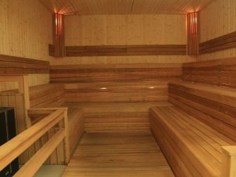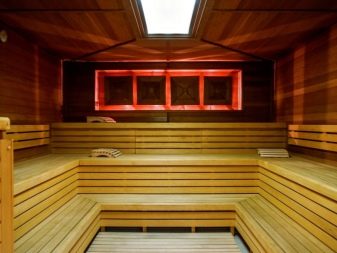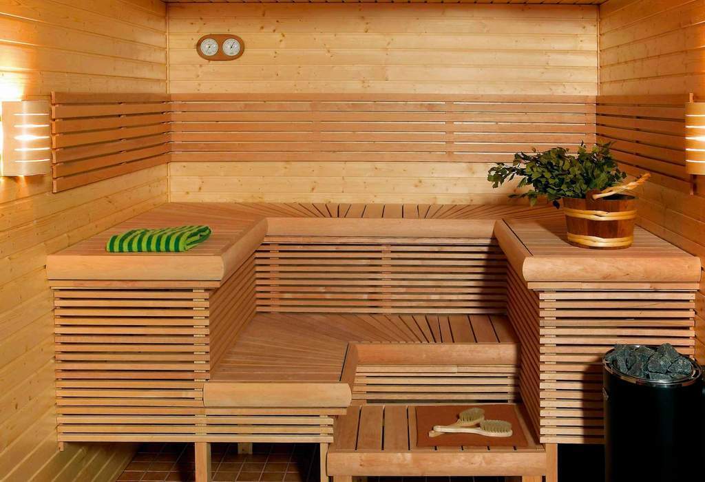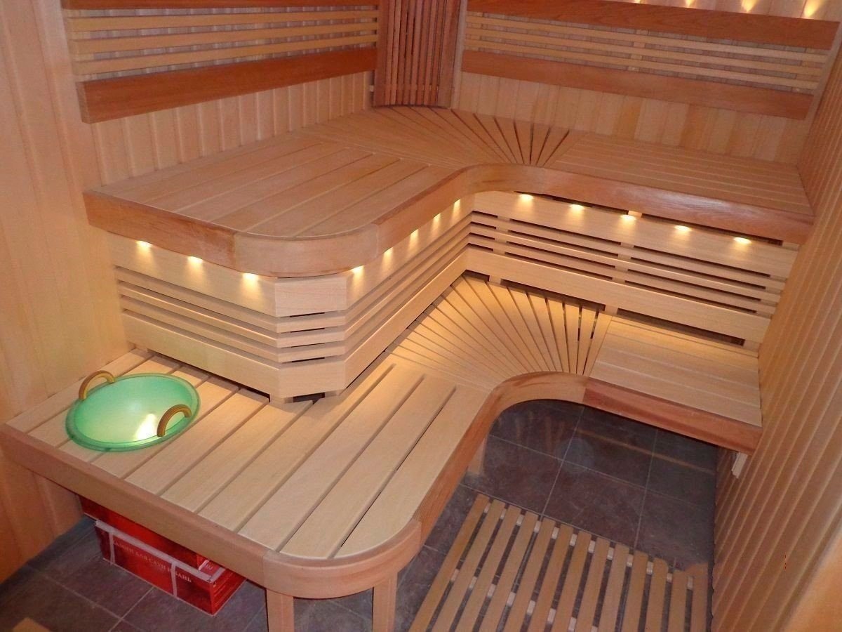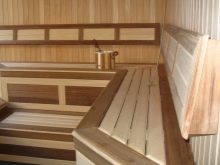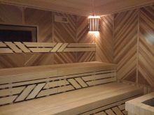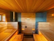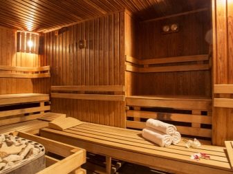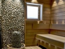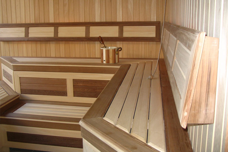 Le cœur du sauna finlandais, et parfois la seule pièce est le hammam. Le matériau de finition doit avoir une bonne résistance à l'humidité et une surface antidérapante agréable, ne pas brûler, ne pas émettre de substances nocives lorsqu'il est chauffé, avoir des qualités esthétiques. Toutes ces exigences sont satisfaites par le bois naturel.