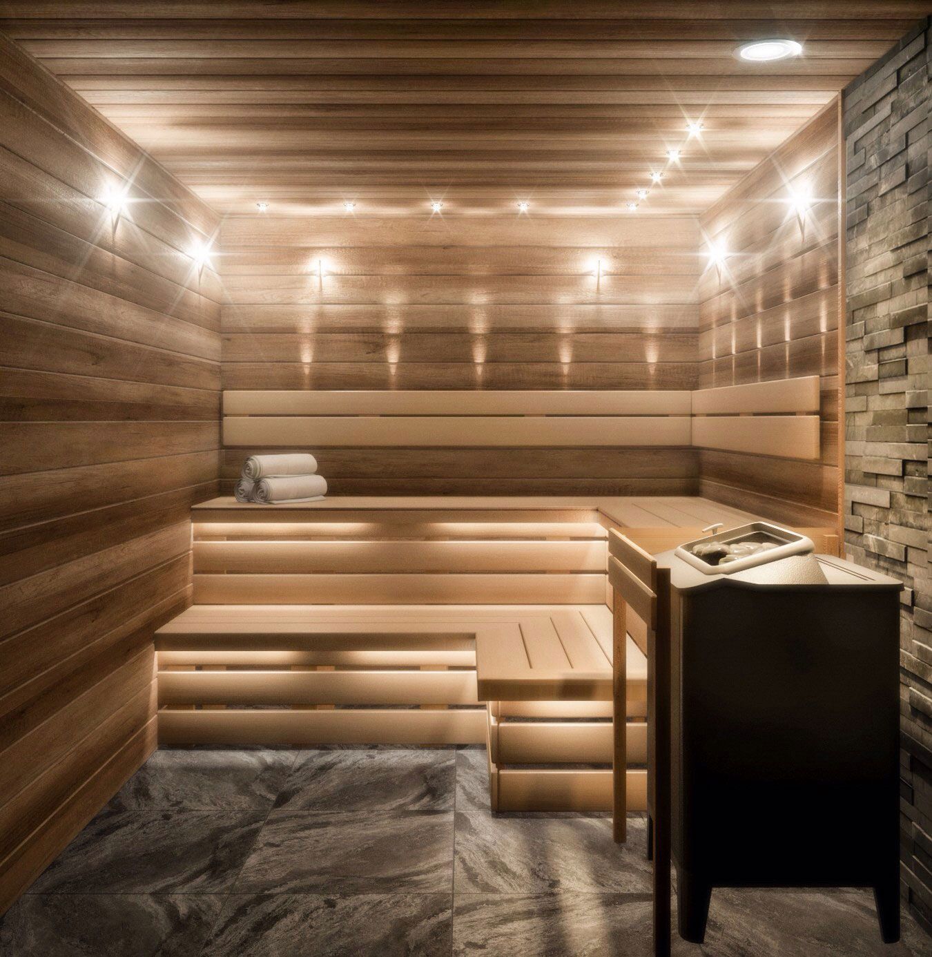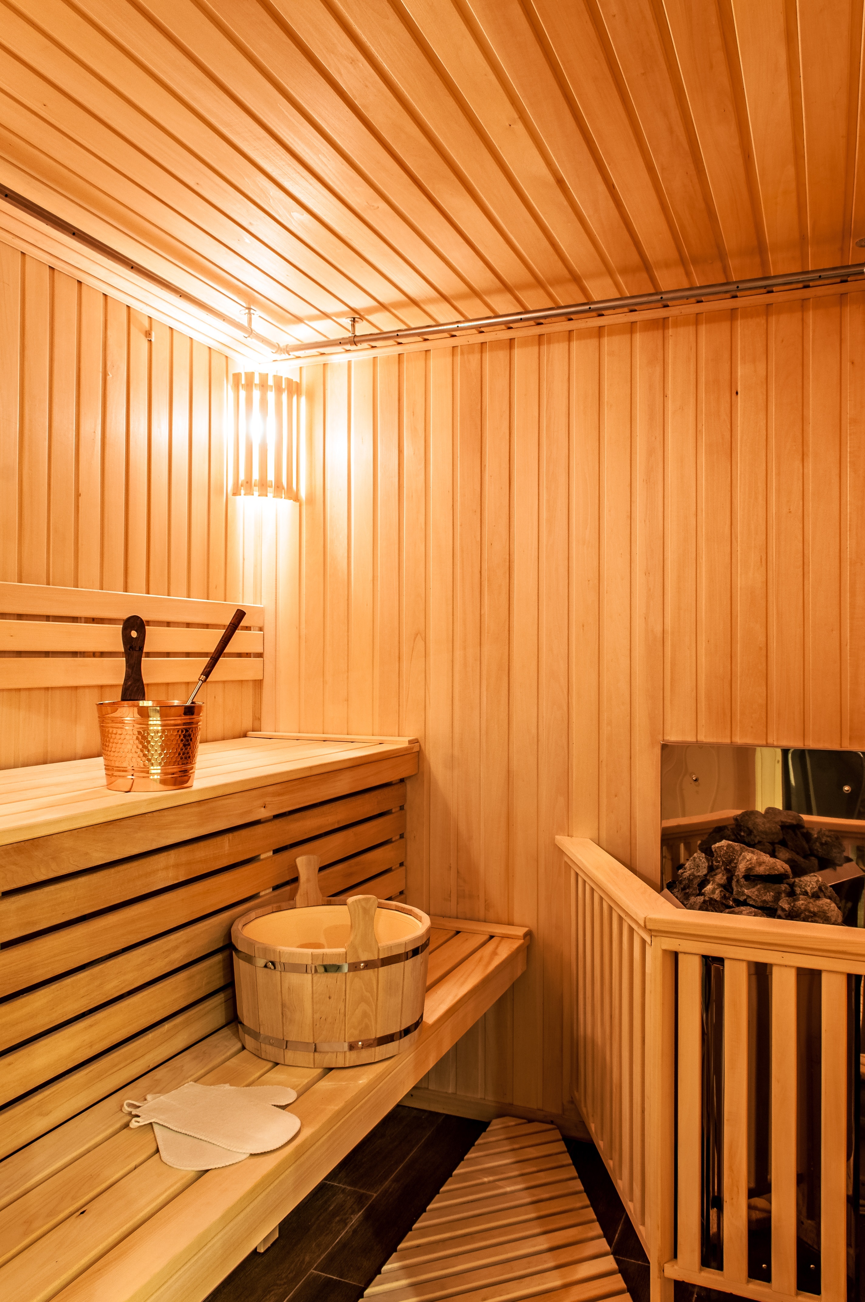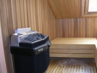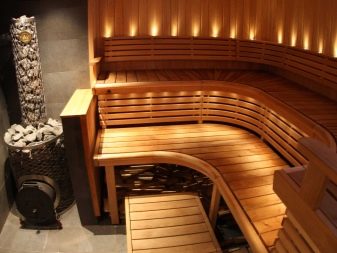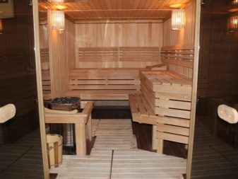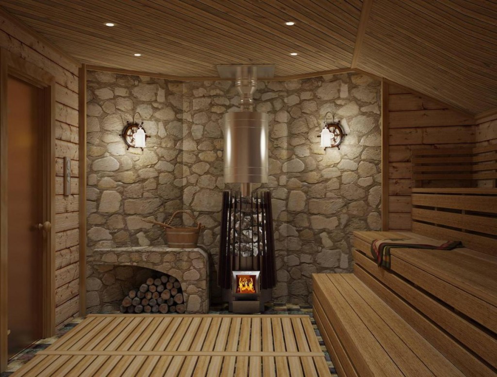 Le cœur du sauna finlandais, et parfois la seule pièce est le hammam. Le matériau de finition doit avoir une bonne résistance à l'humidité et une surface antidérapante agréable, ne pas brûler, ne pas émettre de substances nocives lorsqu'il est chauffé, avoir des qualités esthétiques. Toutes ces exigences sont satisfaites par le bois naturel.