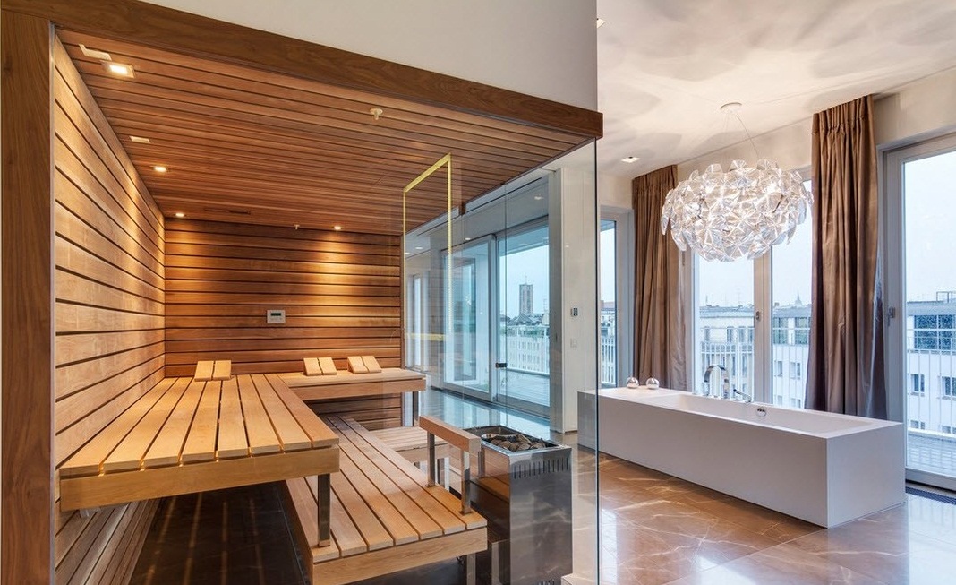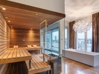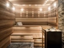 - Le sauna dans un style moderne convient même dans un petit appartement.